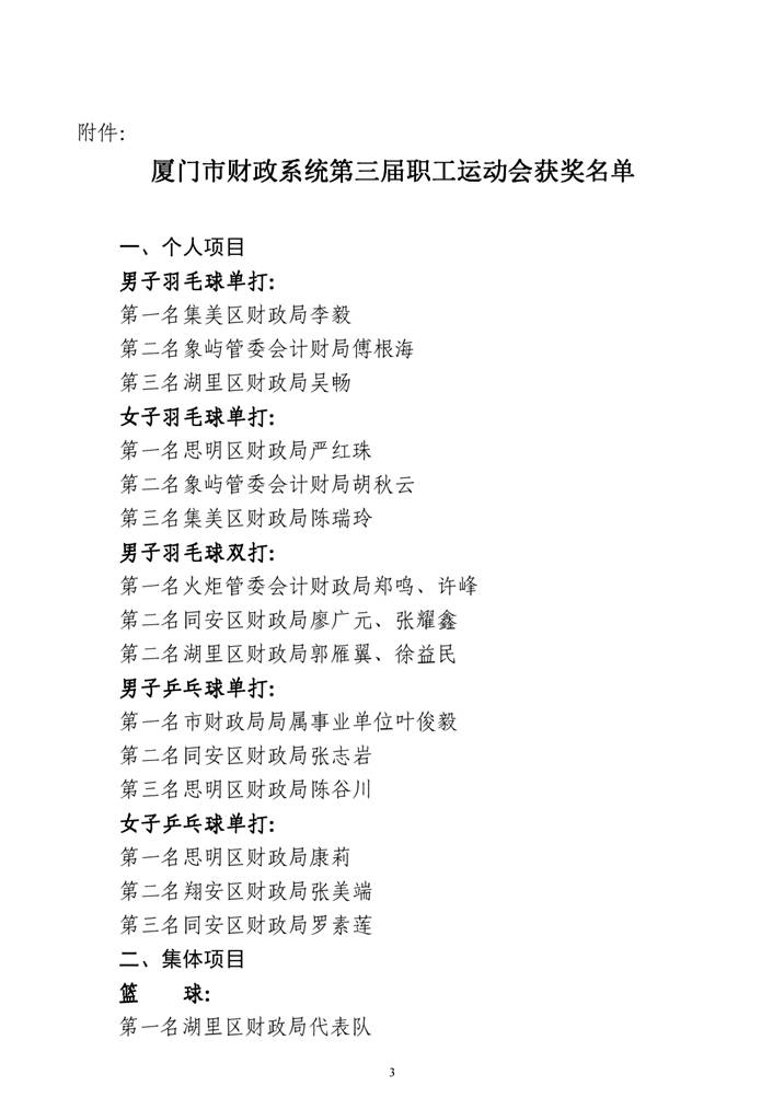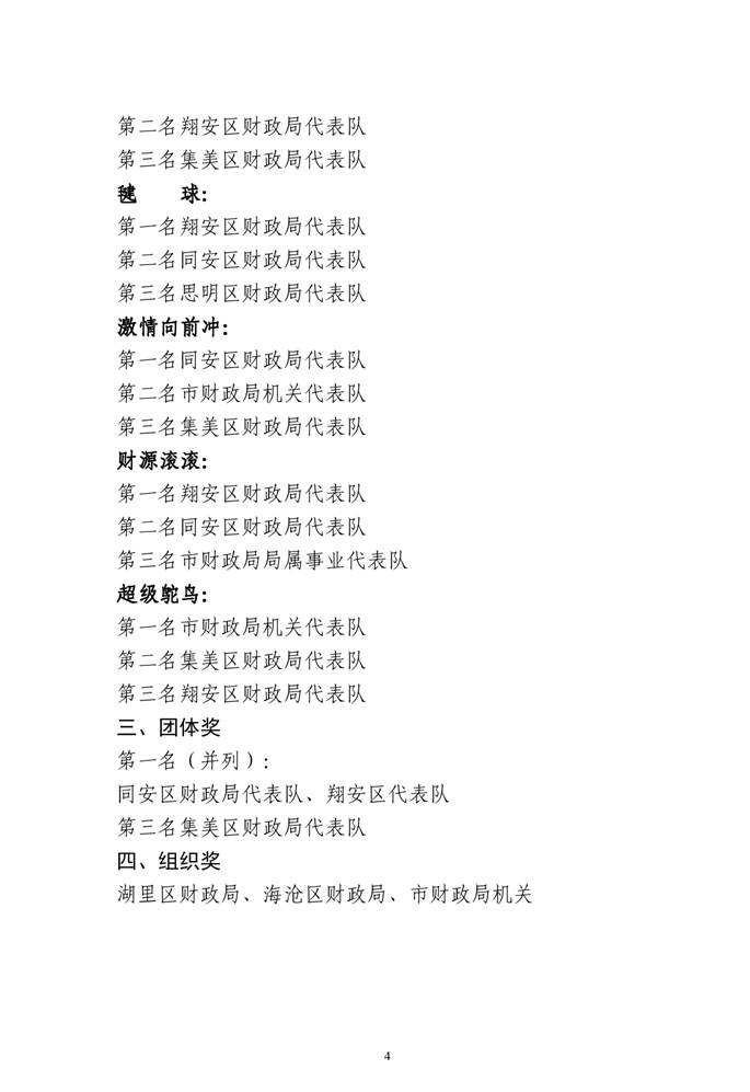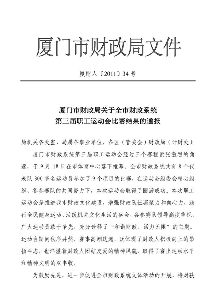 365bet体育在线下载关于全市财政系统第三届职工运动会比赛结果的通报