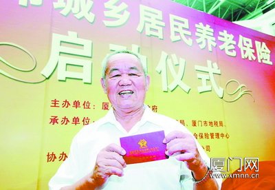 同安一位老人展示政府发放的基础养老金存折。