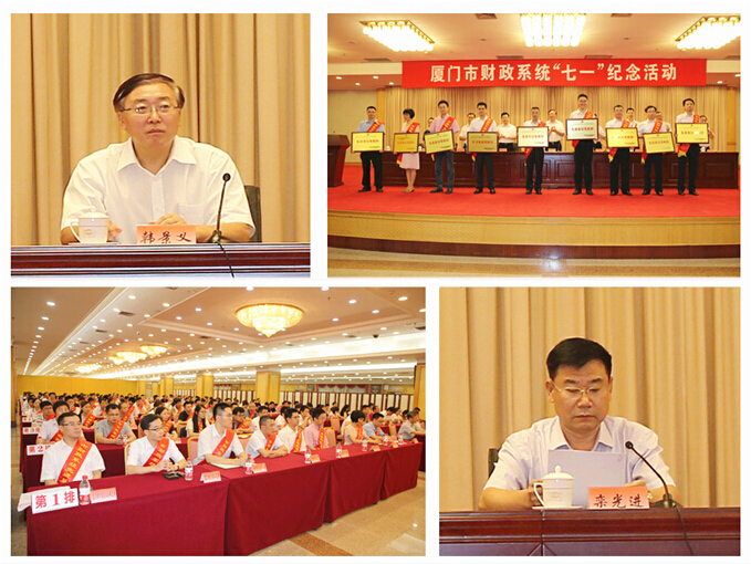 6月26日下午,市财政局直属党委在市人民会堂举行财政系统“七一”纪念活动,纪念中国共产党成立94周年。局机关党委全体党员、金圆集团、厦门银行、市注协和评协党委党员代表参加了活动。局党组书记、局长韩景义发表重要讲话,局党组副书记、直属党委书记栾光进主持会议。