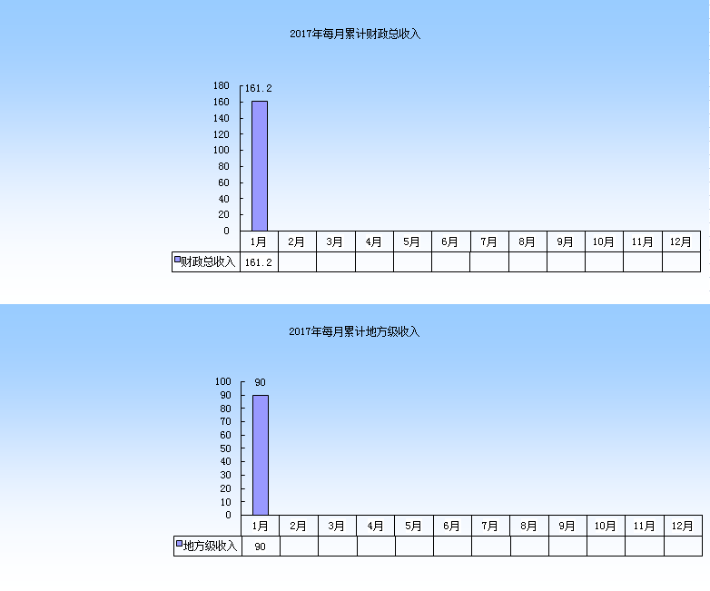 2017年1月,在各级财税部门的共同努力下,全市财政收入顺利实现“开门红”,为完成全年预算奠定了基础。 一、一般公共预算收入情况 1月,全市财政总收入161.2亿元,增长20%,为预算的13.8%。其中:地方级收入90亿元,同口径增长19.8%,为预算的13.2%;上划中央收入71.2亿元,增长20.3%。 分税种看,增值税(含改征增值税)实现41.9亿元,增收8.4亿元,增长25.2%,主要得益于PPI稳中回升、企业去库存加速;企业所得税实现65.3亿元,增收9.5亿元,增长17.1%,得益于经济企稳回升及减税降负初显成效,企业盈利能力有所提高;土地增值税实现13.3亿元,增收5.6亿元,增长72.5%,主要是房地产楼盘清算数量增加。 二、一般公共预算支出情况 1月,全市一般公共预算支出按序时推进,全市一般公共预算支出57.2亿元,增长117.3%,完成预算的8.3%。全市民生支出占一般公共预算支出7成以上,有效保障轨道交通、城市提升改造、岛外新城等重点项目建设。 从主要支出项目情况看:教育支出11.8亿元,增长68.7%;社会保障和就业支出4亿元,增长52.8%;医疗卫生与计划生育支出3.7亿元,增长154.9%;城乡社区支出14.2亿元,增长199.9%;文化体育与传媒支出1.3亿元,增长408.3%;交通运输支出2亿元,增长1.2%。