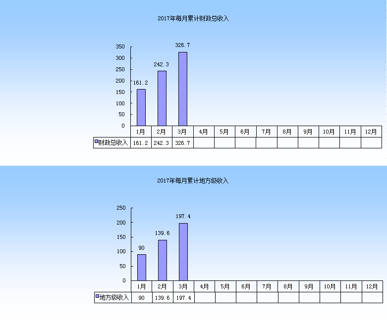 一、一般公共预算 1-3月,全市一般公共预算财政总收入326.7亿元,增长13.1%,为预算的28%,其中:地方级收入197.4亿元,同口径增长15.4%,为预算的29%。财政总收入和地方级收入增幅高于全省平均。 分税种看,增值税、改征增值税和营业税三税实现100亿元,与去年收入规模基本持平,考虑营改增减收翘尾因素,三税可比增长7%左右,与经济平稳增长态势相协调。企业所得税实现73.2亿元,增收12.2亿元,增长19.9%,一方面得益于宏观经济趋于回暖,另一方面减税降负初显成效,企业盈利能力增强,1-2月,规上工业利润总额增长48.2%,规上重点服务业企业营业利润总额增长50%以上。个人所得税实现34.9亿元,增收8.7亿元,增长33.3%,主要是工资薪金所得稳定增收预计部分企业分红带动个人所得税较快增长。土地增值税和契税实现35亿元,增收6.3亿元,增长21.9%,主要是税务部门强化房地产项目清算,土增税增收4.9亿元,增长46.3%;土地出让契税增收2亿元,增长192.3%。 1-3月,全市一般公共预算支出148.3亿元,增长12.3%,完成预算的21.6%,比去年同期提高1个百分点,较好地落实积极财政政策,有效保障重点领域资金需求。 分领域看,民生事业支出占财政支出的比重保持在七成以上,发展成果更多惠及全体市民,其中教育支出29亿元,增长11.2%,社会保障和就业支出12.2亿元,增长33.4%,医疗卫生支出12.9亿元,增长25.4%,科技文化支出5.9亿元,增长18%。重点项目支出保障有力,市区财政及时批复各部门预算并下达指标计划,提升资金拨付效率,保障部门用款需求,着力推进轨道交通、翔安机场、岛外新城、灾后恢复重建等重点项目建设,发挥政府投资对经济增长的拉动作用。 二、政府性基金预算 全市政府性基金预算收入94.7亿元,增长399.1%,为预算的26%,其中土地出让收入92.4亿元,增长424.1%。全市政府性基金预算支出62亿元,完成预算的17%。 三、国有资本经营预算 全市国有资本经营预算收入0.2亿元,为预算的1.5%。全市国有资本经营预算支出1.5亿元,完成预算的16.3%。