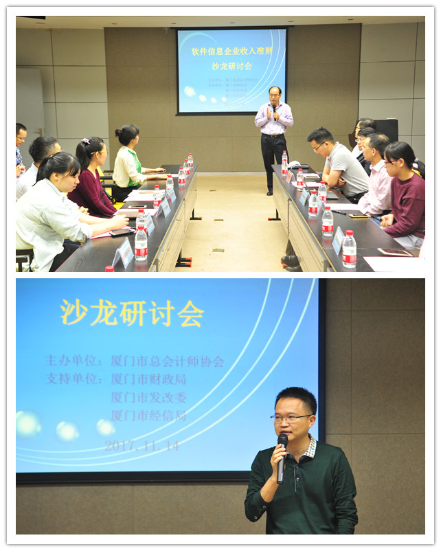 一是举办“软件信息企业收入准则沙龙研讨会”,推动厦门市千亿重点产业-软件信息服务业企业更快适应新准则、融入新准则。2017年11月14日上午,在我局会计处策划及统筹并在市发改委、市经信局和软件园区服务企业厦门市信息集团的全力支持下,由市总会计师协会具体承办的“软件信息企业收入准则沙龙研讨会”在厦门信息集团举办。来自我市22家重点软件信息企业、5家会计师事务所、1家证券公司以及60多位会计专家和会计工作人员参加了研讨会。研讨会由4399网络股份公司副总裁戴建宏介绍了互联网公司游戏收入的确认有效做法;毕马威福建地区首席合伙人梅雅宁从专业技术层面讲解了软件行业收入确认及财税方面重点和难点问题;厦门国会计院副教授陈爱华结合实际案例阐释新收入准则在软件企业产品和服务收入的确认规则的变化及相关疑难问题。与会代表盛赞沙龙交流这一有效沟通形式,大家颇感受益匪浅。