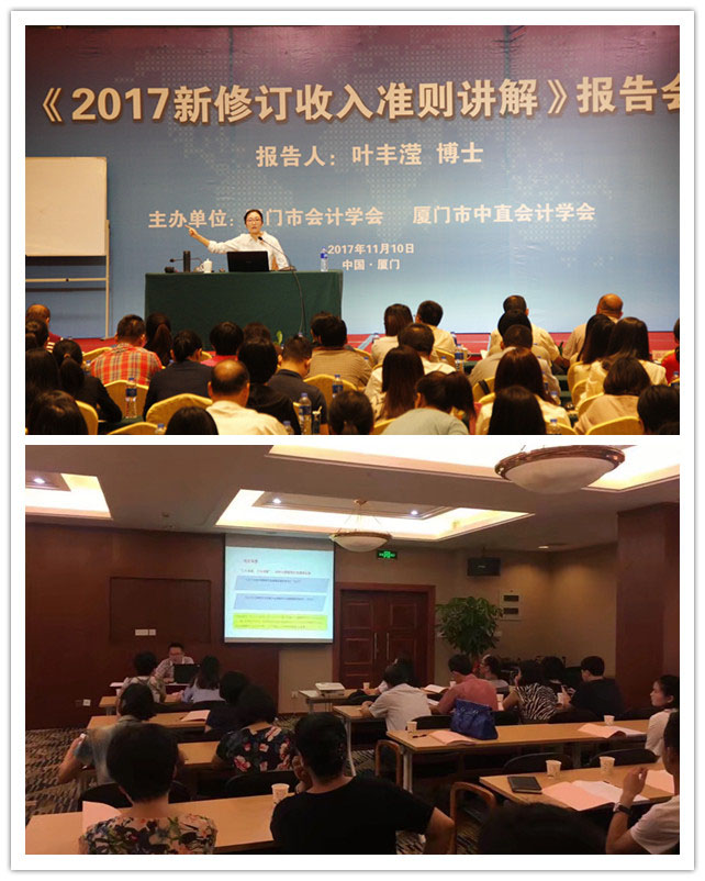 二是召开“新收入准则讲解报告会”,推动新收入准则在企业的全面落地。11月10日上午,在市财政局的推动与协调下,市会计学会与市中直会计学会在金雁酒店联合主办“新收入准则讲解报告会”,厦门国会院叶丰滢副教授结合实际案例,生动幽默、深入浅出地讲解新收入准则确认与计量方面的规则变化及特殊销售收入处理新规定。厦门各行各业的会计高管和从业人员近400人聆听了报告,对新收入准则整体把握有了新的理解。