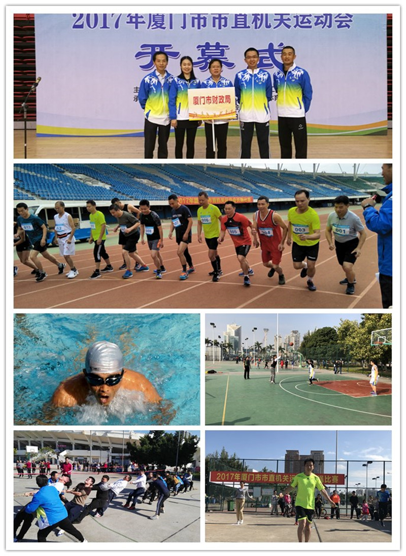 11月5日,厦门市市直机关运动会在市体育中心隆重举行,财政系统100多名运动健儿报名参加15个项目的角逐。全部赛事都是利用周末时间进行,经过一个多月的紧张激烈比赛,运动会于12月10日圆满结束。市财政局运动健儿努力拼搏,集体运动项目中拔河比赛获得第四名的好成绩;个人运动项目中余瀚洋、曹冠雄分别在象棋比赛、游泳比赛中进入前三名;运动健儿们在5000米长跑、羽毛球、乒乓球、台球、保齡球、网球、飞镖、围棋比赛等运动项目中皆进入前八名,获得较好成绩。经厦门市体育局、厦门市市直机关党工委评选,市财政局获得优秀组织参赛奖。